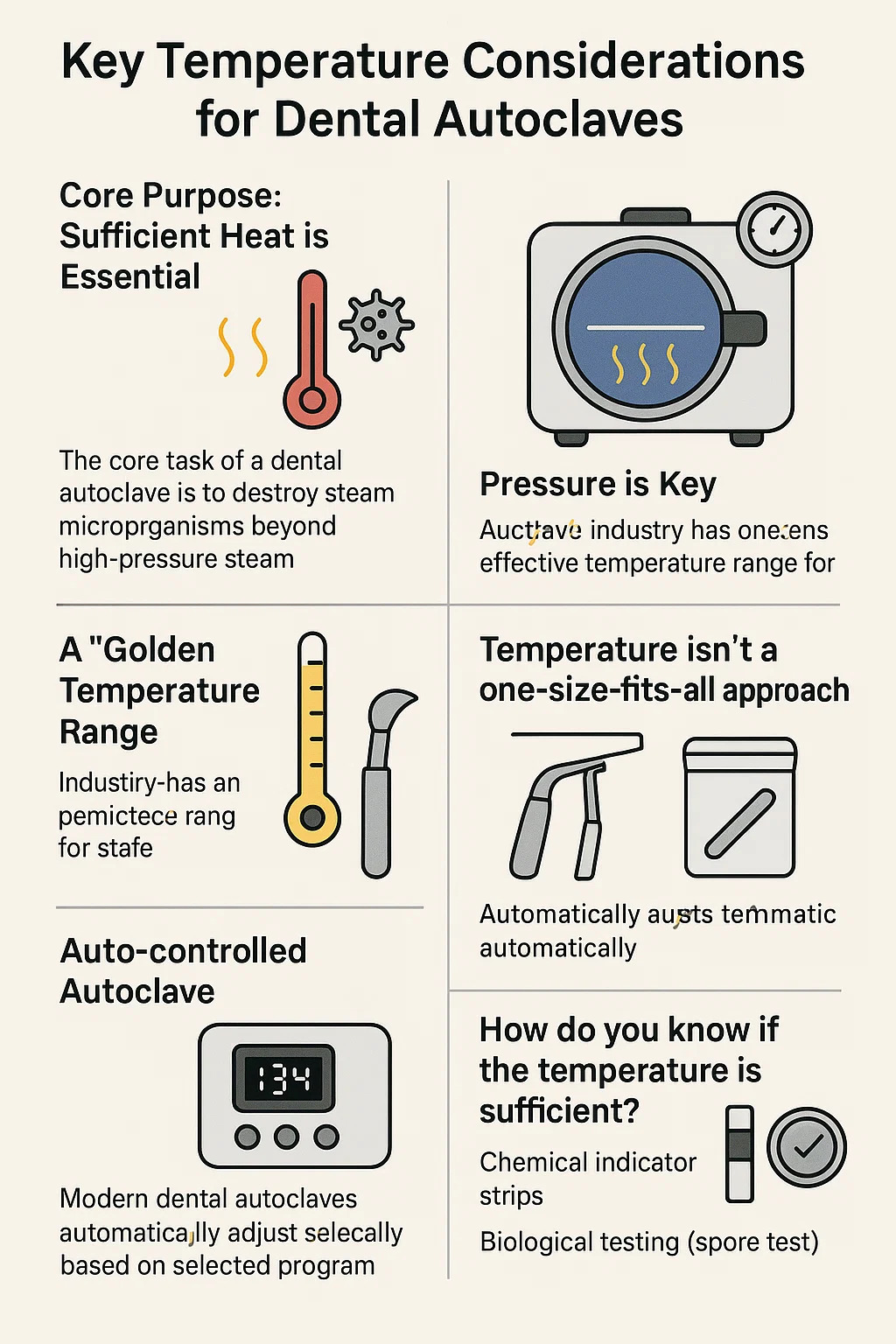 Kroz dugogodišnju praksu, dentalna industrija je identificirala univerzalno prihvaćen i učinkovit temperaturni raspon za sterilizaciju.